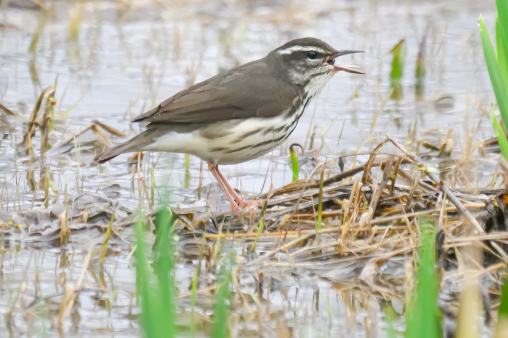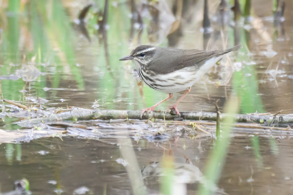At first, I thought it might be the swamp sparrow, but then I noticed it had a plain brown back, white underparts with black streaks. As the bird foraged near the water, its tail bobbed up and down. I fixed my camera on the bird and became excited as I realized it was a Louisiana Waterthrush.